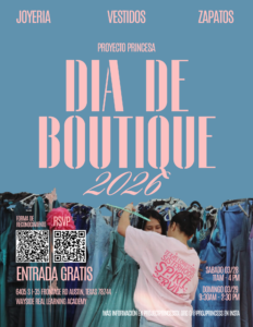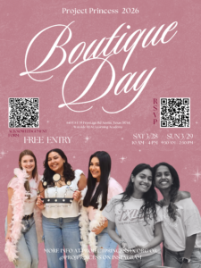 Project Princess is very excited to announce our annual Boutique Day for March, 2026! Boutique Day is our largest event to provide prom dresses and accessories free of cost to local Austin high schoolers. From personal shopping assistance to hair + makeup advice, Texas Lonestars and volunteers hope to make your prom day absolutely memorable.